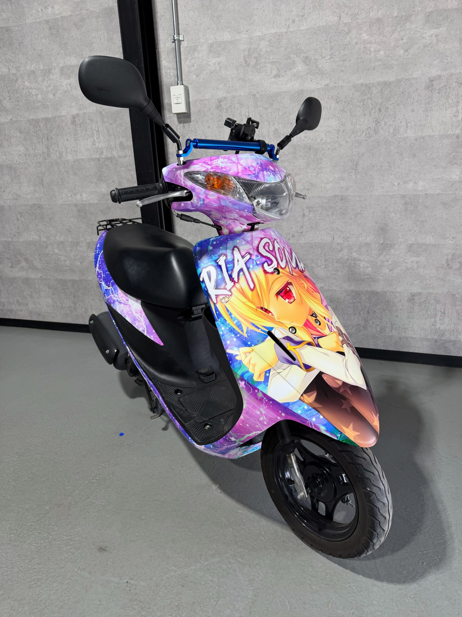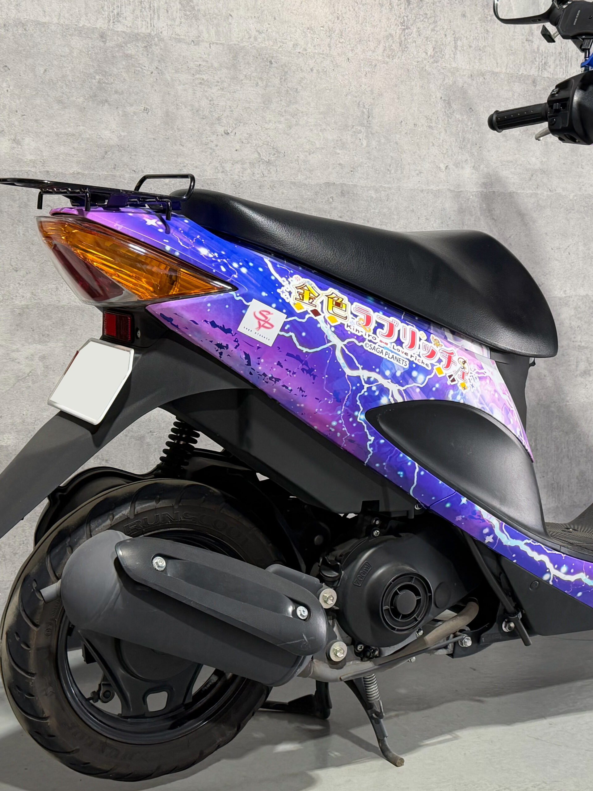 オーナー様からスクーター アドレスV50をサガプラネッツ様の『金色ラブリッチェ』仕様フルラッピングにしたいというご依頼。